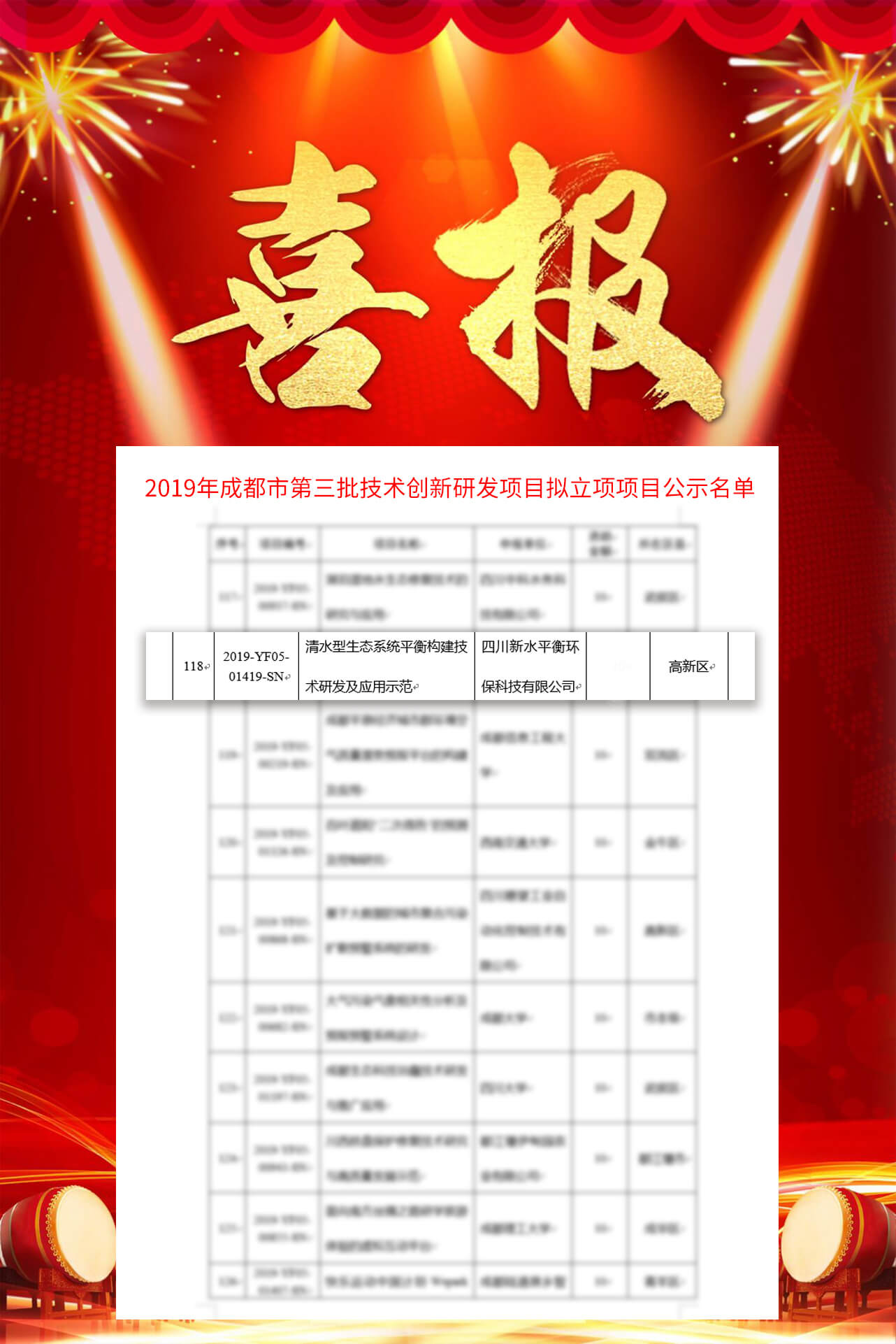 近日,我司“清水型生態(tài)系統(tǒng)平衡構(gòu)建技術(shù)研發(fā)及應(yīng)用示范項目”成功入選成都市2019年第三批技術(shù)創(chuàng)新研發(fā)項目擬立項項目。